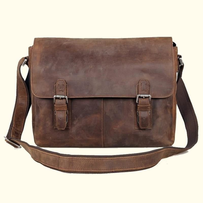 Functional Elegance with the Crazy Horse Cow Leather Messenger Bag