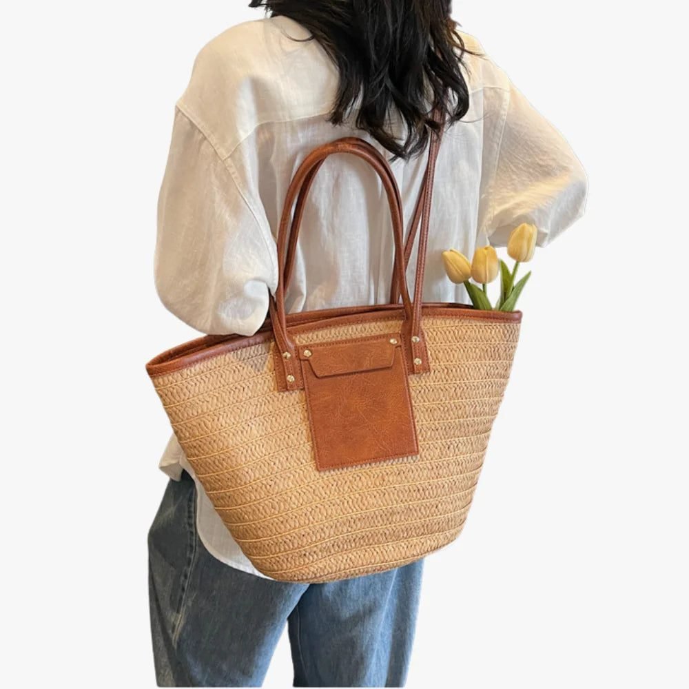 • Material: Straw & Vegan Leather