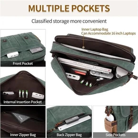 Beyond its aesthetic appeal, the Maverick’s Canvas & Leather Briefcase excels in providing unmatched utility. Built to accommodate the technological needs of today, it includes multiple compartments perfect for organizing devices and essentials. This makes it an indispensable tool for busy professionals, students, or anyone on the go.