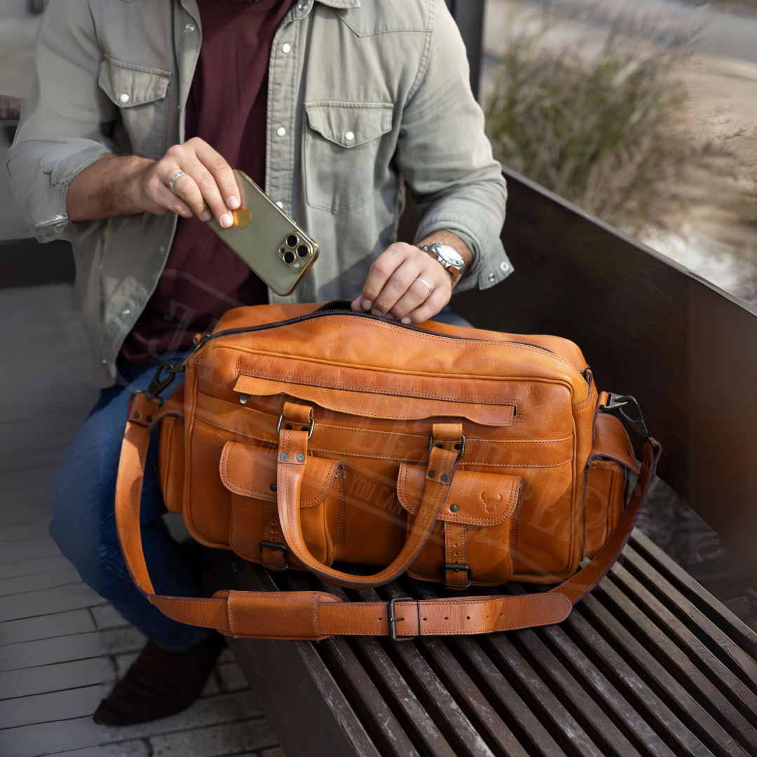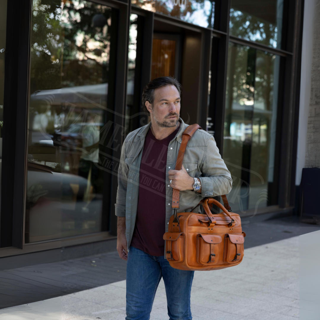 With its unique and rugged charm, the American Outlaw resonates with those who value independence and elegance. Perfect for both professional settings and weekend getaways, this leather bag seamlessly adapts to your lifestyle, offering versatility without sacrificing its distinct identity. Be it in the urban hustle or the quiet countryside, it remains a steadfast companion.