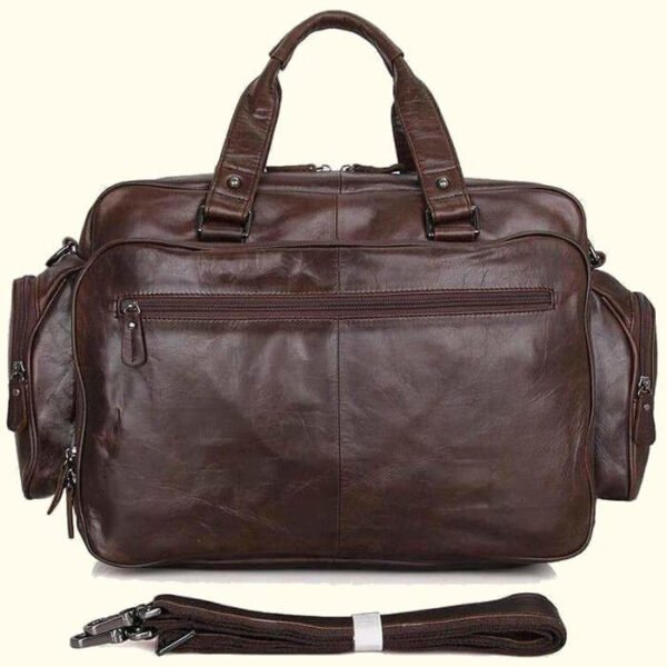 The Cowhide Leather Business Travel Briefcase is not just about appearance; it’s about versatility and functionality. Designed with travel in mind, it accommodates all your essentials, from documents to electronic devices, thanks to its strategically designed compartments. This briefcase is your go-to travel partner that ensures everything you need is within easy reach.