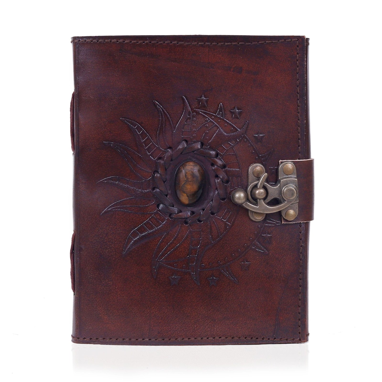 Crafted with Care: Leather Tiger Stone Journal Details