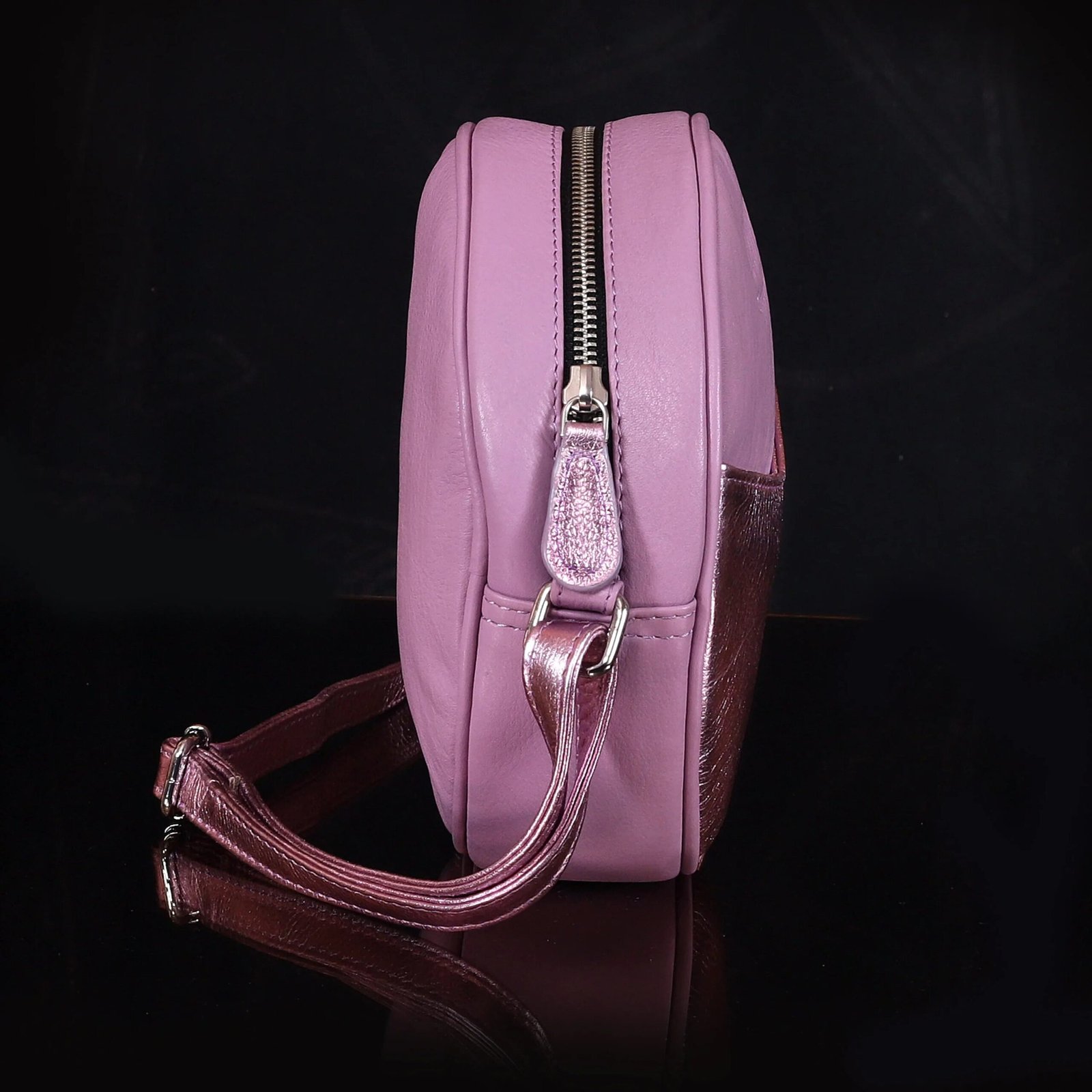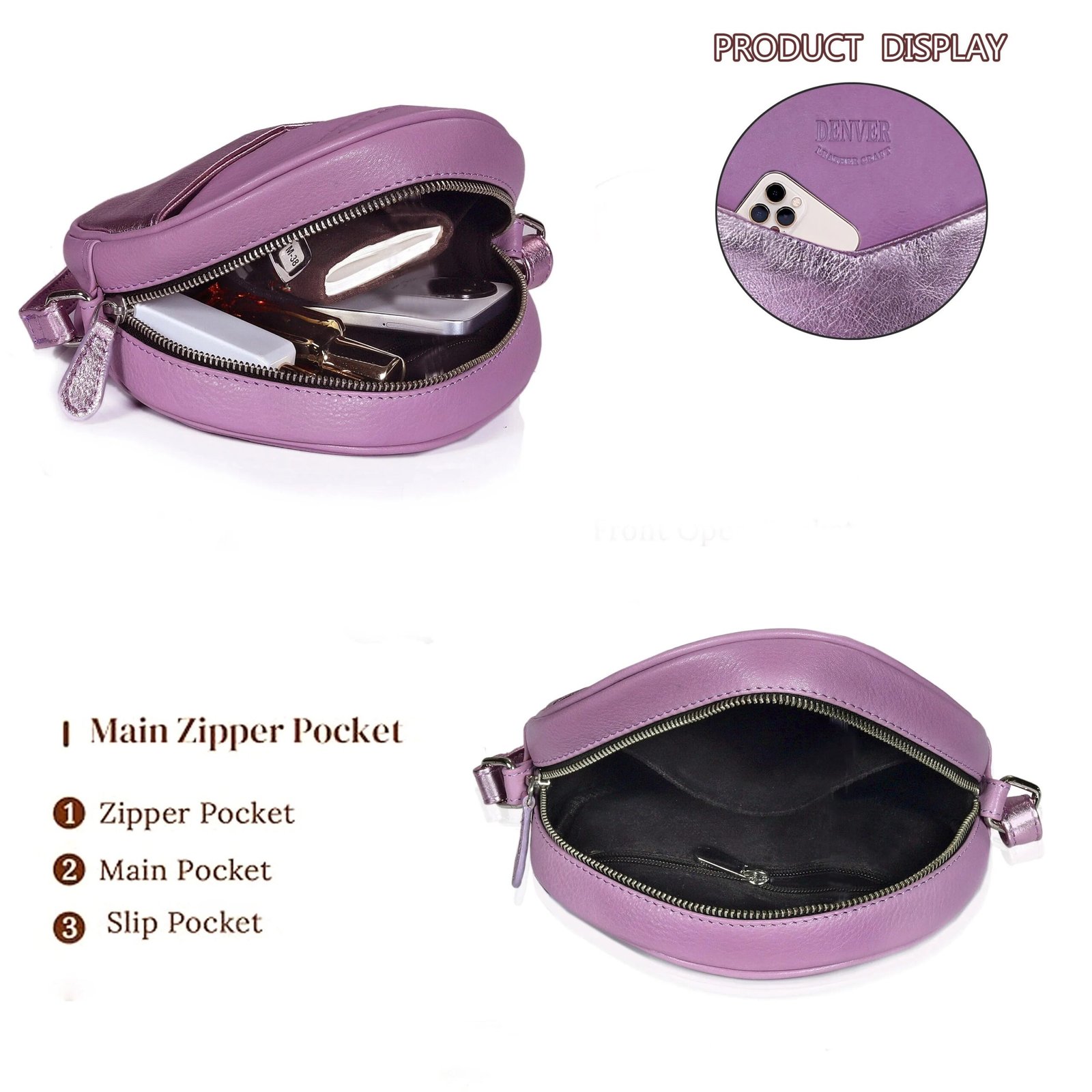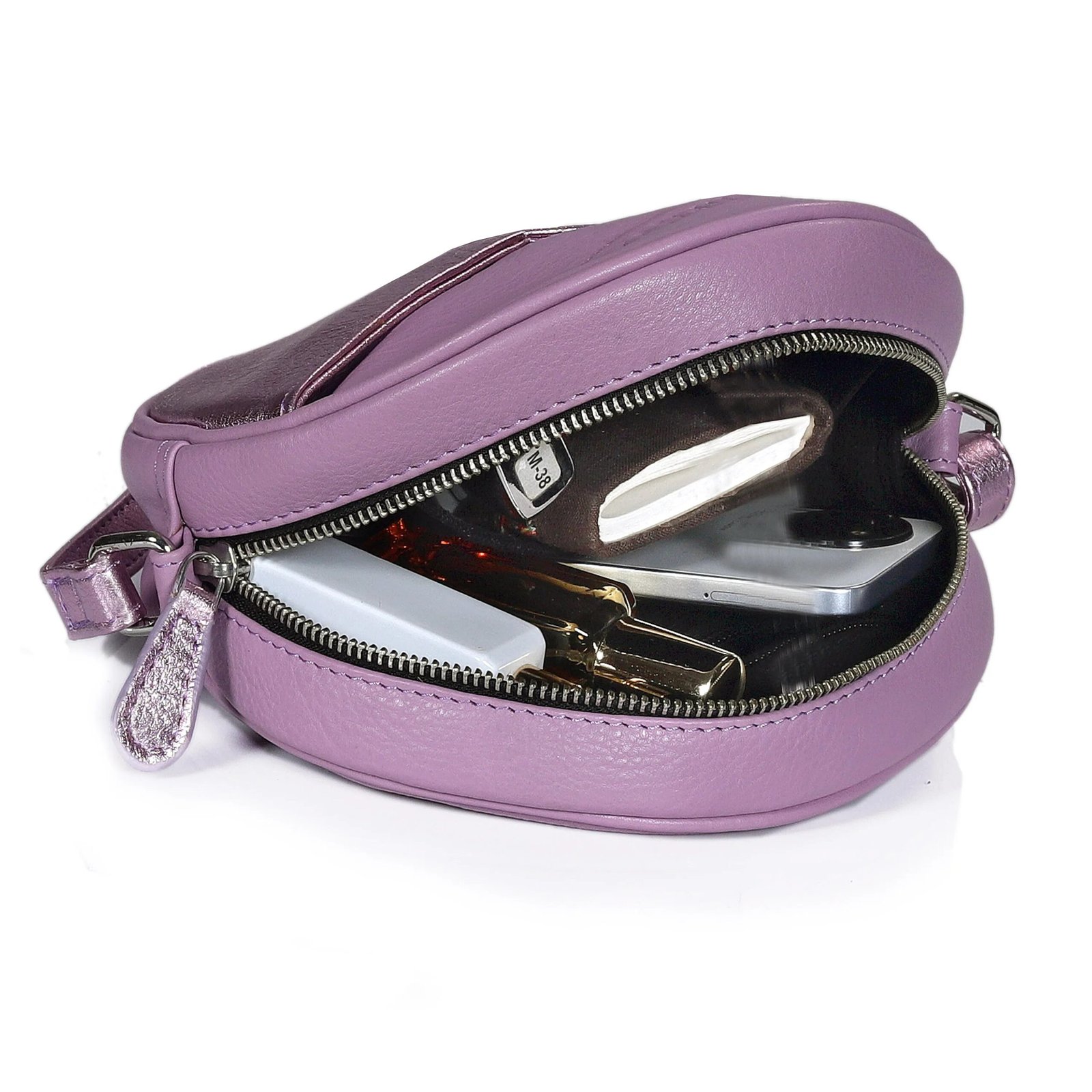 - Round, crossbody style