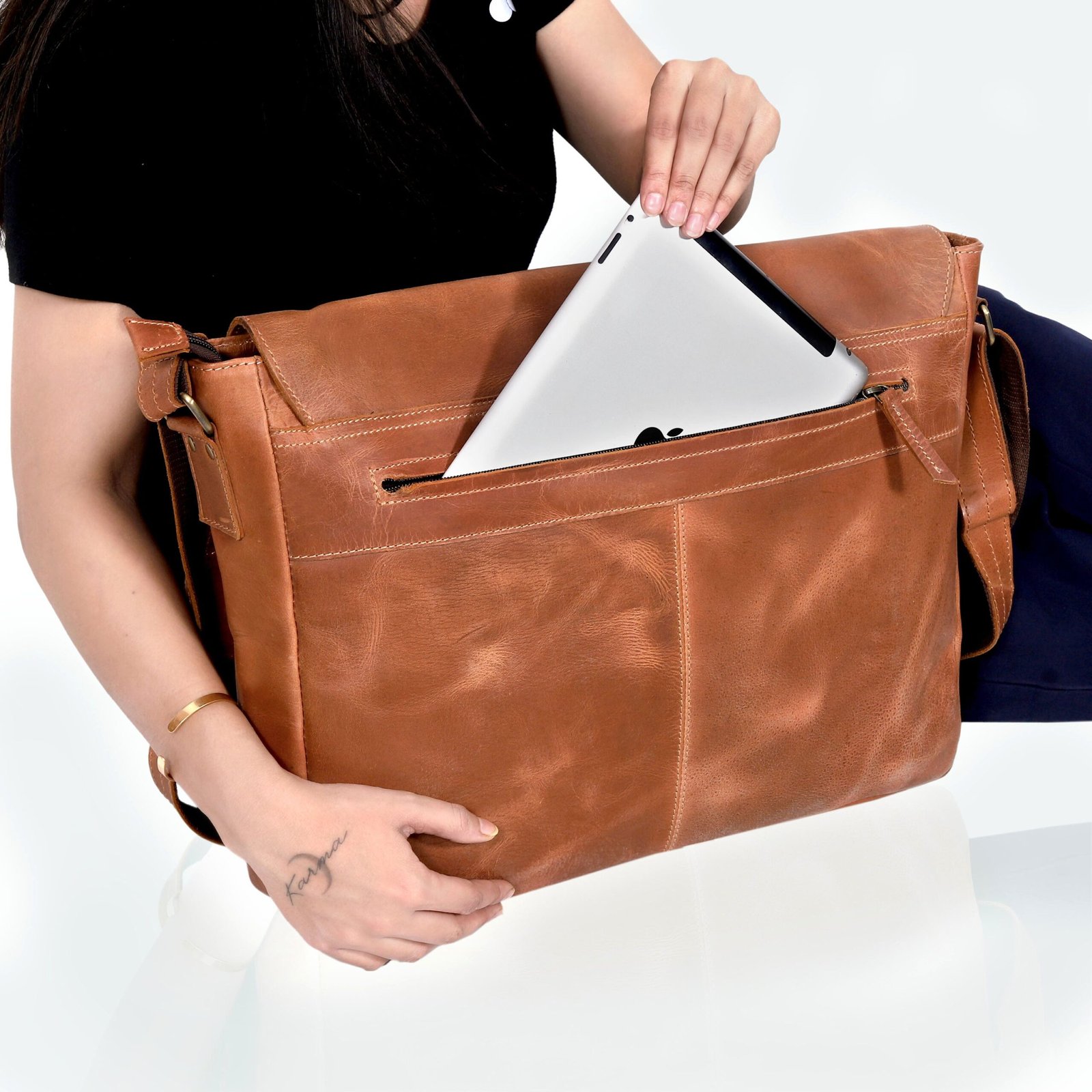 The elegance of The Executive Leather Messenger Bag is highlighted by its distinct craftsmanship. Each bag speaks of the attention to detail and timeless design, ensuring you make an impression whether at the boardroom or on business trips. This is more than a bag; it’s a statement of your stature.