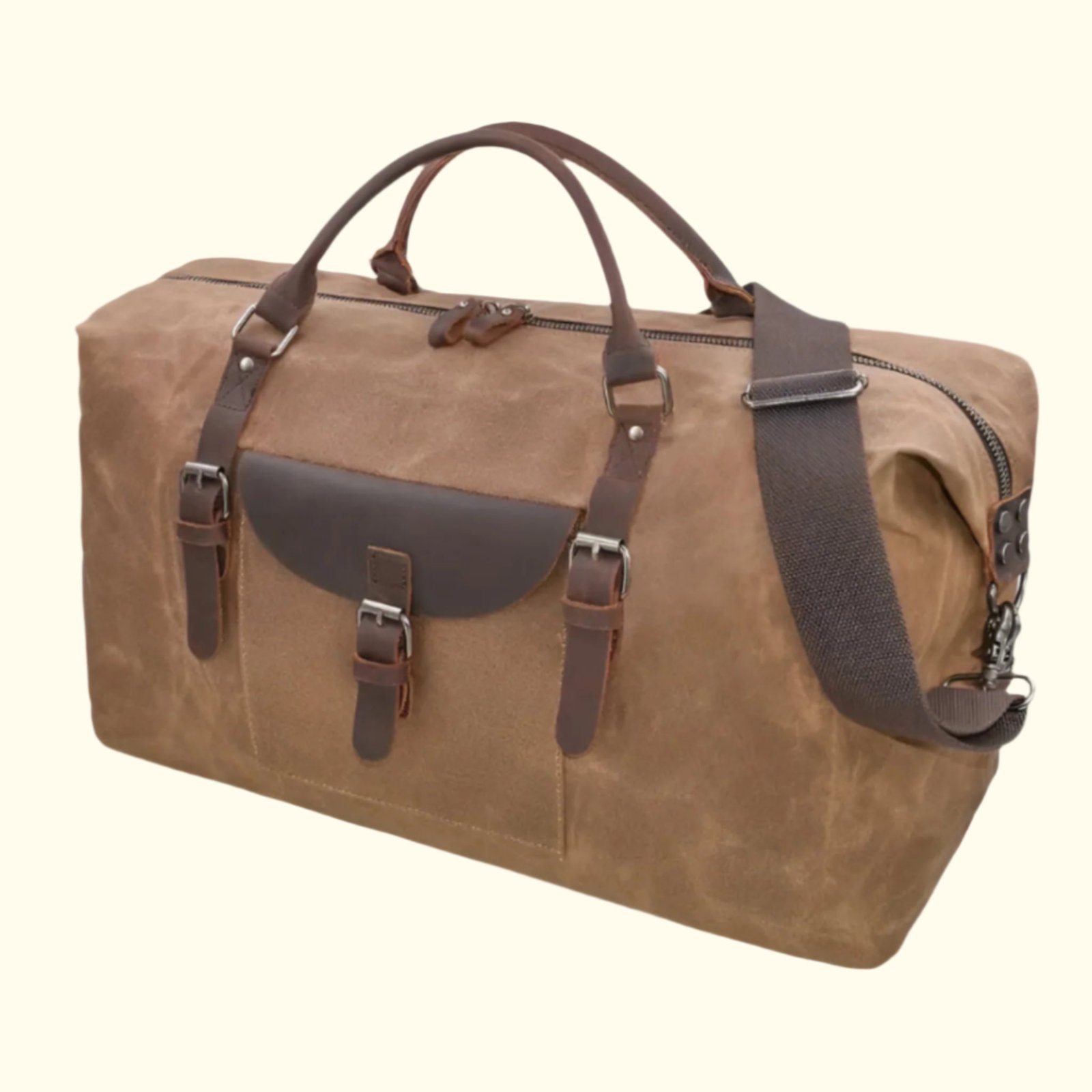 Elegant Craftsmanship in the Voyager’s Haven Canvas & Leather Duffle Bag
