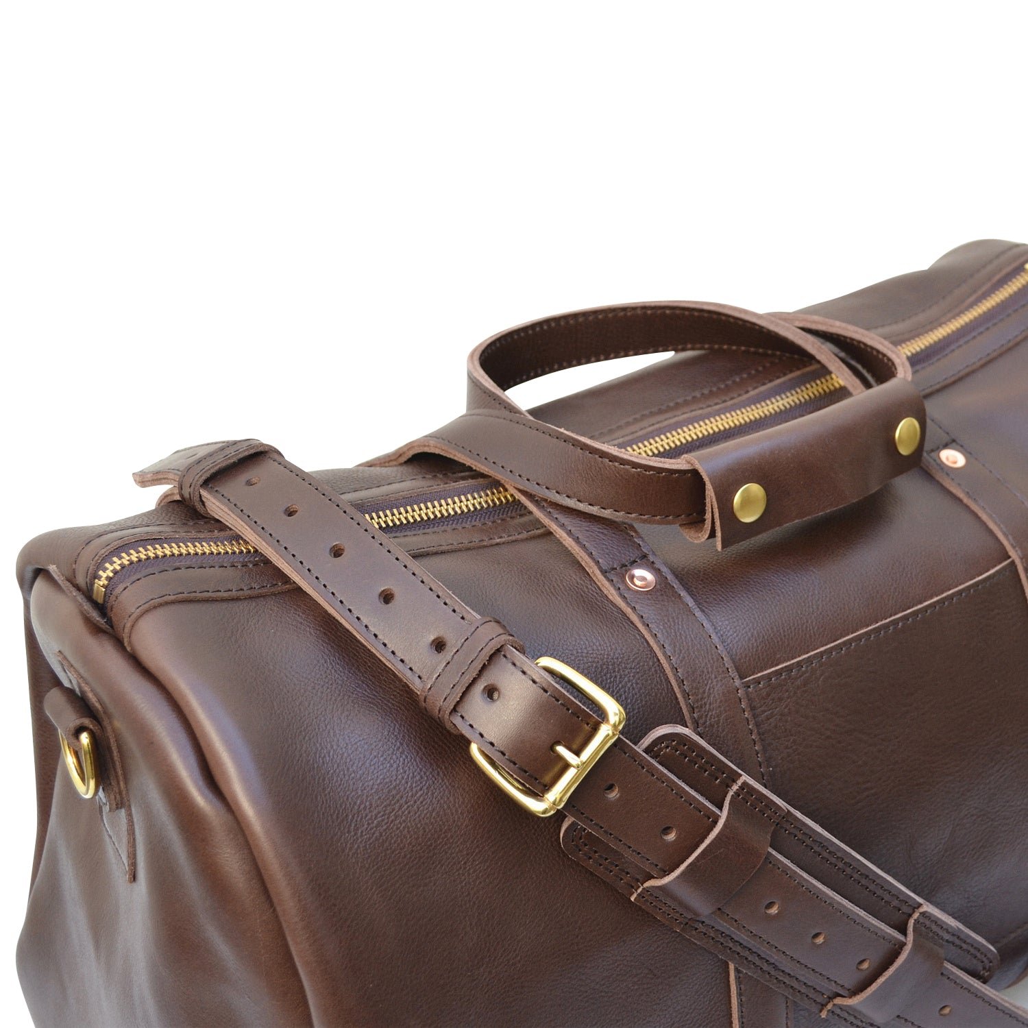 The meticulous craftsmanship is evident in every detail of the bag, from the solid brass hardware to the hand-set copper rivets at stress points ensuring long-lasting durability. It is a testament to superior quality that offers peace of mind, making it an excellent investment for style-savvy travelers.